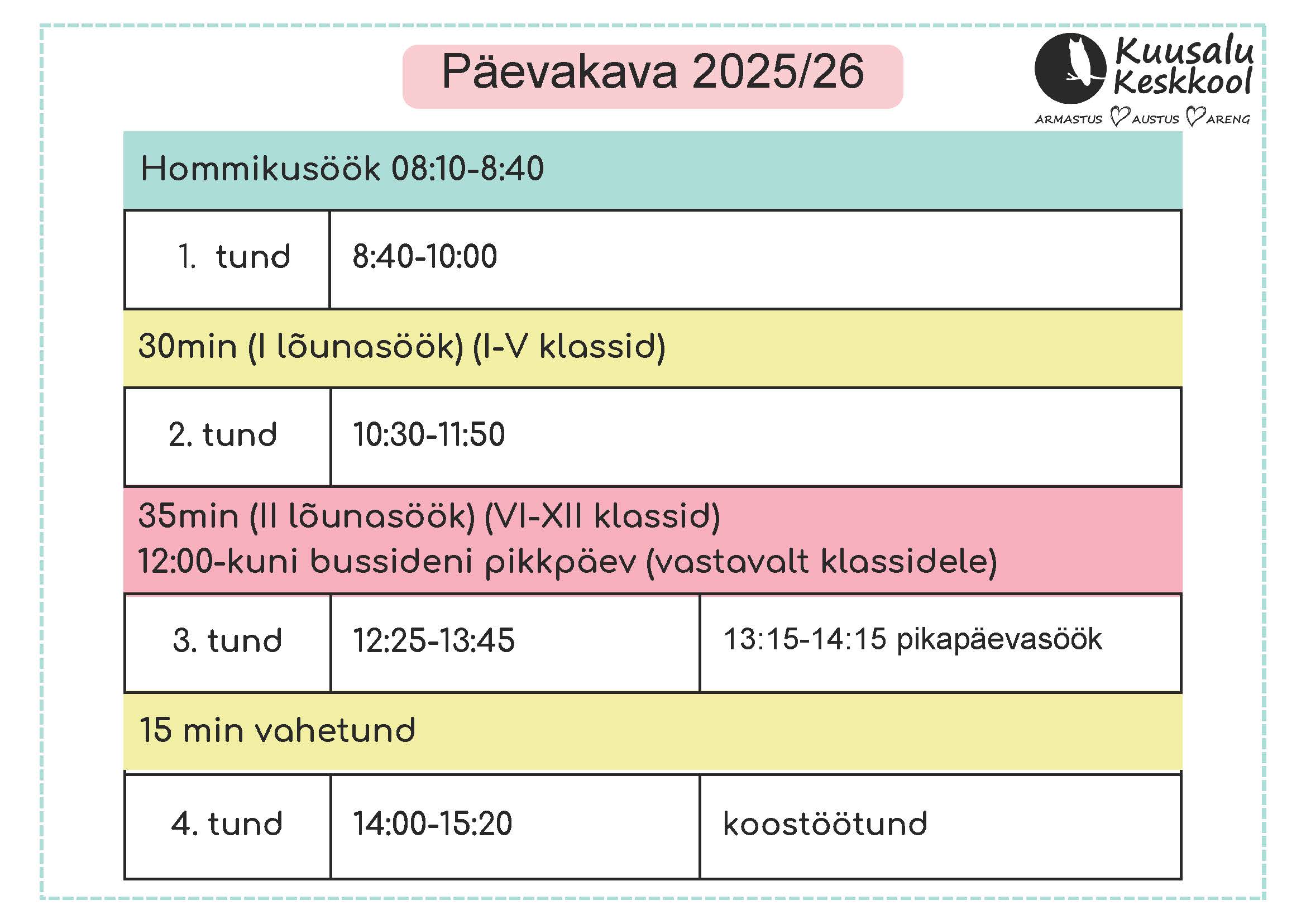 2025/2026 õppeaastal algavad tunnid kell 08:40,